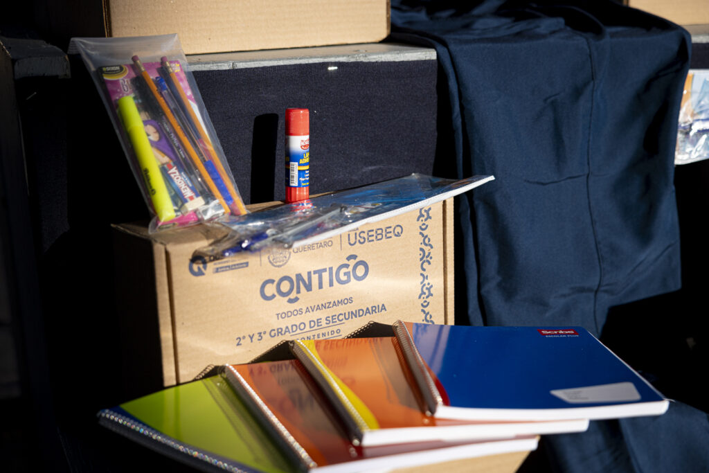 En apoyo a la economía familiar, el gobernador, Mauricio Kuri González, instruyó a la titular de la Unidad de Servicios para la Educación Básica en el Estado de Querétaro (USEBEQ), Irene Quintanar Mejía, a llevar a cabo la entrega de 354 mil 239 paquetes de útiles escolares y 295 mil 695 uniformes deportivos.
