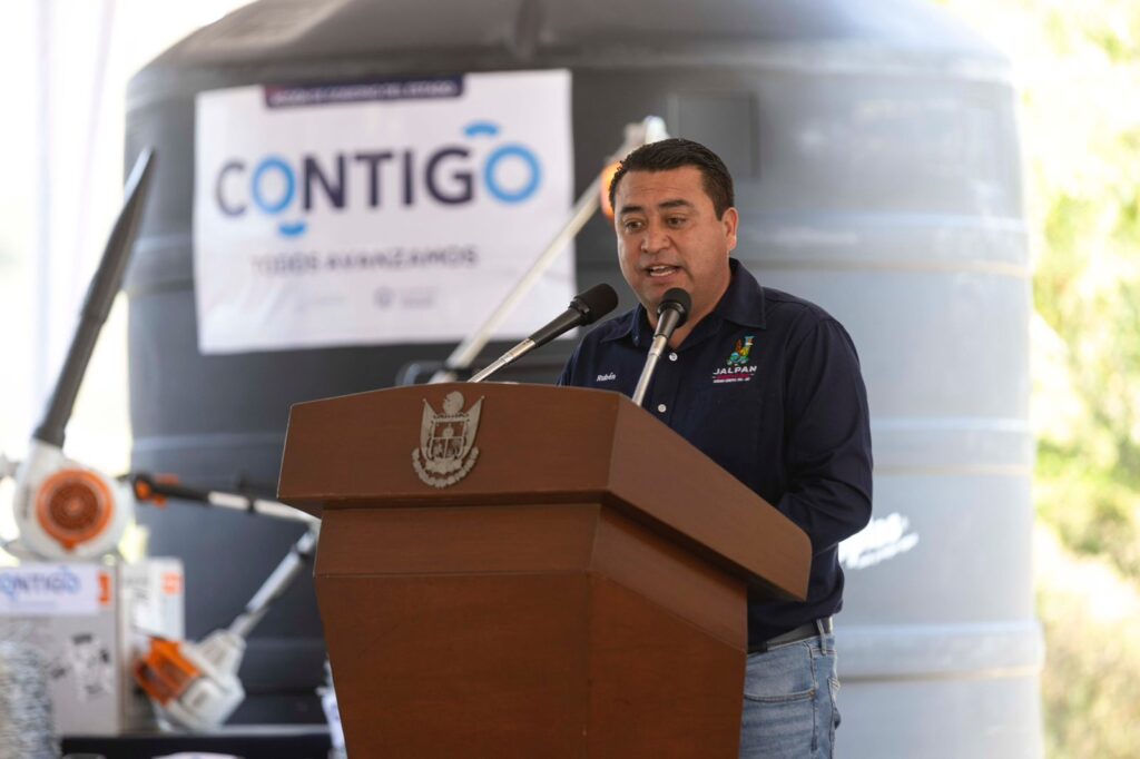 Al hacer uso de la voz, desde la explanada del rastro municipal, el presidente municipal de Jalpan, Rubén Hernández Robles, destacó que, resultado de la colaboración entre el Estado, el Municipio y los beneficiarios, a través del programa Contigo en Concurrencia son beneficiadas 300 familias productoras con implementos agrícolas, tractores, herramientas, vientres, sementales, fertilizantes, entre otros apoyos.