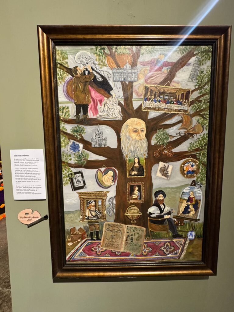Cabe señalar que el árbol está siempre presente como símbolo de crecimiento, de conexión con el mundo y de la diversidad de culturas y familias artísticas, y es también fuente de vida y de inmortalidad. Es La Catrina quien recuerda, precisamente, que el arte está más vivo que nunca, que una escuela de pintura genera otra, y es así como se va construyendo la historia del arte.