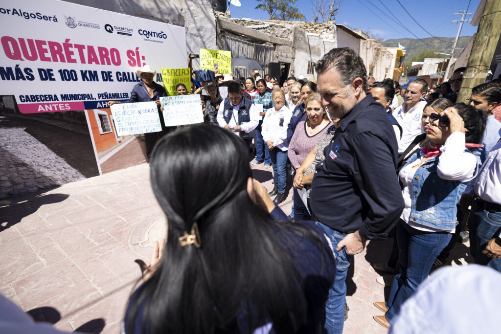 Durante la gira de trabajo que realizó por el municipio de Peñamiller, el gobernador Mauricio Kuri, encabezó la entrega del mejoramiento de las calles Libertad y Francisco I. Madero, obra que contó con una inversión de 5.6 millones de pesos y que beneficia a más de 820 habitantes de la zona, al mejorar las condiciones de vida y de movilidad en la zona.