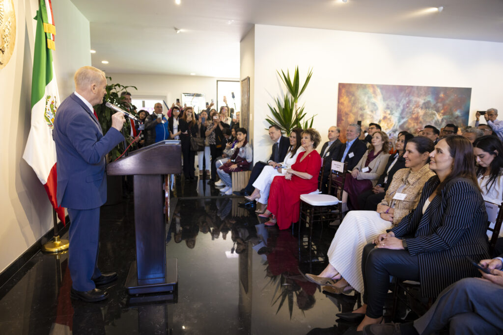 Al tomar la palabra, el embajador de Estados Unidos de América en México, Ronald D. Johnson, expresó su entusiasmo por dialogar sobre el espacio y refrendar lazos de colaboración que abren nuevas oportunidades de cooperación en sectores estratégicos. Ponderó que el esfuerzo conjunto entre la iniciativa privada y gobiernos es fundamental para construir un futuro mejor para ambos países.