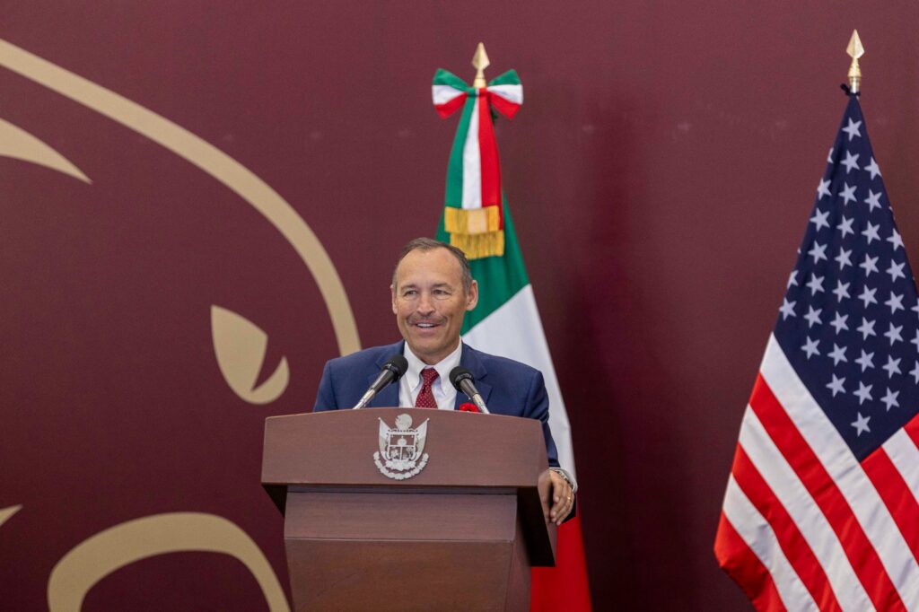Extendió la felicitación al presidente de Texas State University, Kelly Damphousse, así como a cada uno de sus directivos, por avanzar en su misión de educar ciudadanos y formar líderes con valor para nuestra sociedad. También al presidente y fundador de Elisia Education HUB, Ricardo González Valdés, cuya visión ha sido fundamental para el crecimiento de este proyecto con gran impacto social.