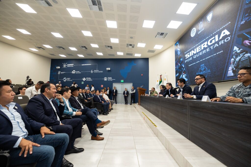 El titular del Poder Ejecutivo estatal, Mauricio Kuri González, asistió a la reunión de seguimiento de objetivos de la estrategia “Sinergia por Querétaro”, la cual tiene como propósito fortalecer la coordinación y colaboración entre las distintas corporaciones de seguridad de los tres órdenes de gobierno, así como alinear las agendas estratégicas y de mitigación de riesgos.