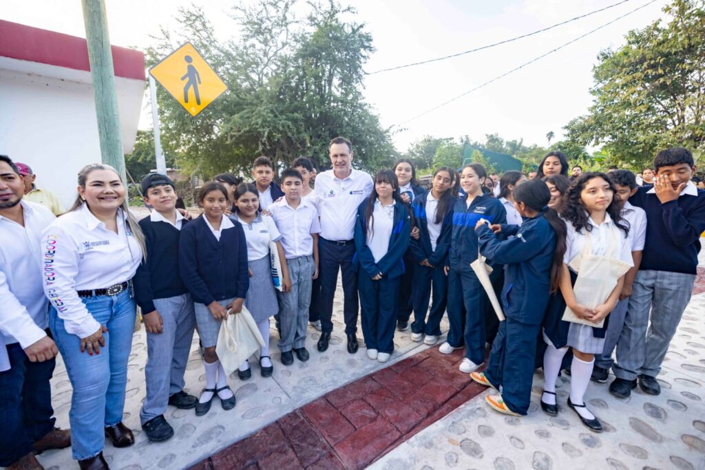 Detalló que en El Refugio se invirtieron 2.8 millones de pesos en el mejoramiento de mil 267 m2 de calles con empedrado ahogado en mortero con huellas de concreto, así como la red de agua potable y el señalamiento horizontal y vertical, en beneficio de 600 habitantes.