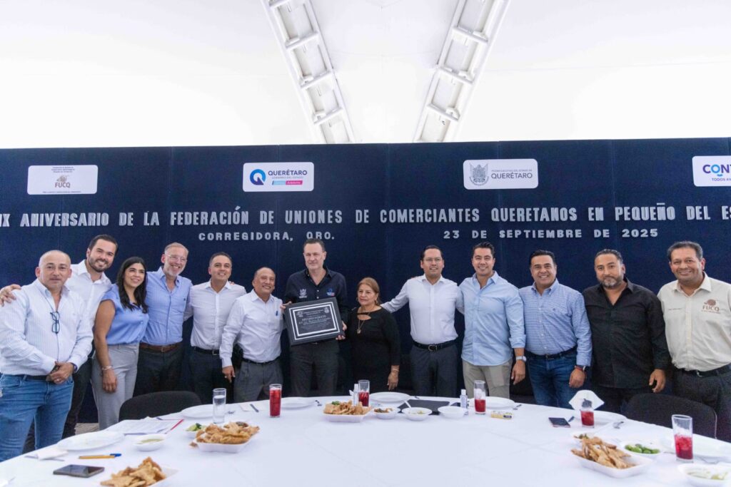 Al encabezar el XIX Aniversario de la Federación de Uniones de Comerciantes Queretanos en Pequeño del Estado A.C., el gobernador Mauricio Kuri González refrendó el compromiso de su administración para mantener un gobierno cercano que escucha al comercio y a los tianguistas, y a quienes reconoció como un sector aliado que constituye el tercer motor de la economía en la entidad.