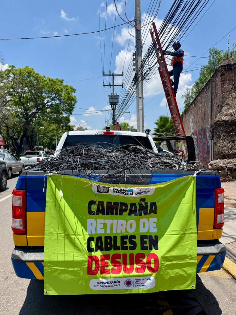 Por indicación del alcalde Felifer Macías, el Municipio de Querétaro, en colaboración con 14 empresas de telecomunicaciones, logró retirar 25.1 toneladas, equivalentes a 240 mil metros lineales, de cableado en desuso de las principales calles de la ciudad.